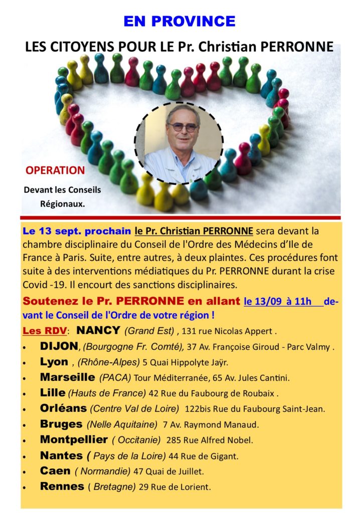 Si vous ne pouvez vous déplacer à Paris, mais que vous souhaitez soutenir de Pr. Christian Perronne, rejoignez-nous devant les conseils régionaux!!