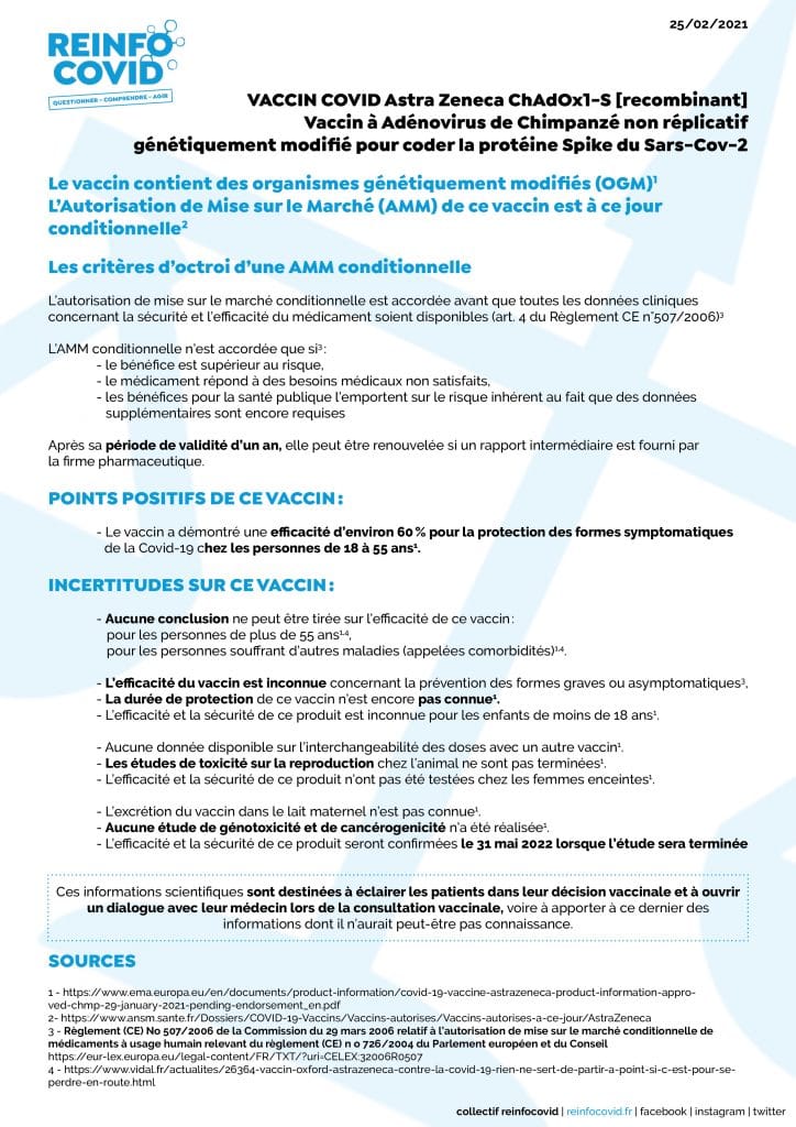 Vaccin Astra Zeneca – Eléments connus de la balance bénéfice-risque